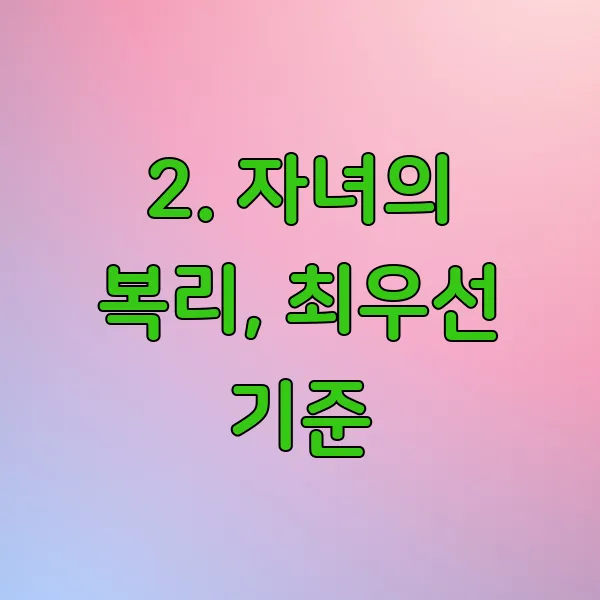 - 자녀의 의사 : 만 13세 이상 자녀의 경우, 법원은 자녀의 의사를 존중해야 합니다. 자녀의 연령과 판단 능력을 고려하여 신중하게 의견을 청취합니다.