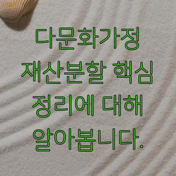 다문화가정 재산분할은 일반적인 재산분할과 비교했을 때 몇 가지 특수한 점들을 고려해야 합니다.