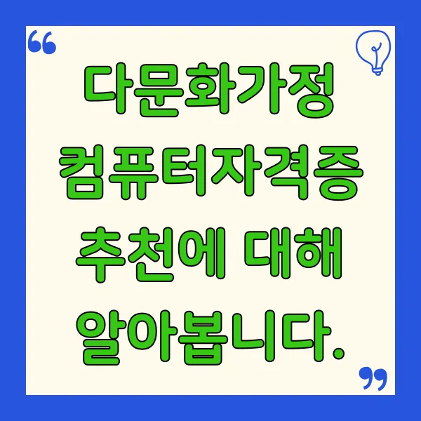 1. 다문화가정을 위한 맞춤 컴퓨터 자격증 추천