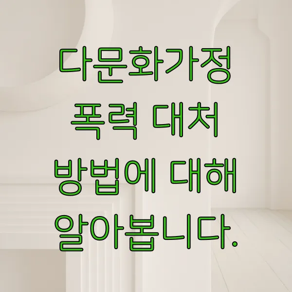 이 글은 폭력의 고통 속에 갇혀 있는 다문화가정 구성원들에게 따뜻한 손길을 내밀고자 합니다. 당신의 두려움과 아픔을 이해하고, 혼자 힘겨워하지 않도록 도움을 줄 수 있는 다양한 지원과 정보를 제공합니다. 당신은 혼자가 아닙니다.