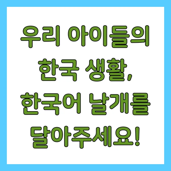 우리 아이들의 한국 생활, 한국어 날개를 달아주세요!